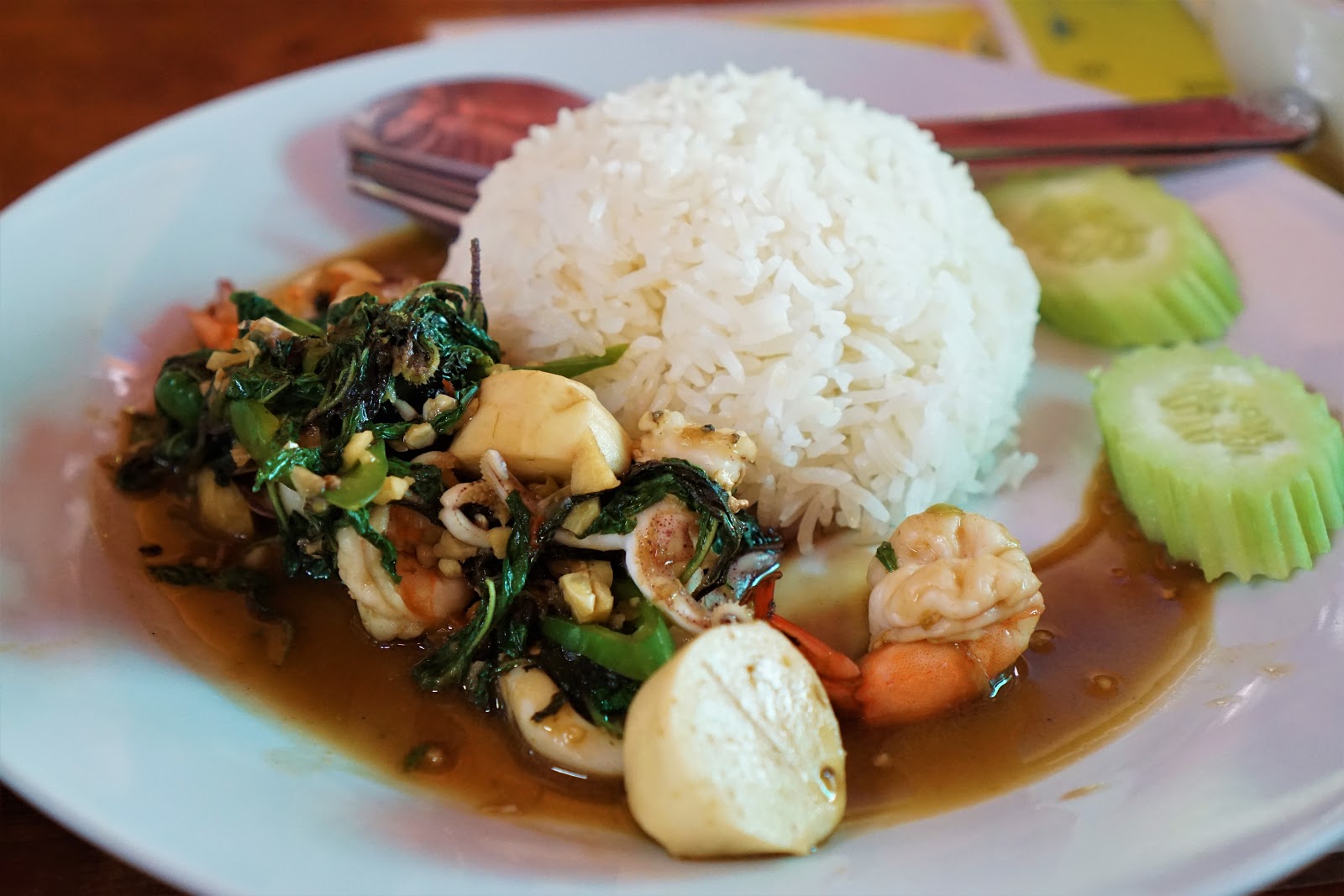 We walked around with our backpacks on our back, wondering around town to find a place to fill our stomach. There weren’t many restaurant visible in the area we circled around, and we finally come across a decent-looking local Thai restaurant – Khao Mae.